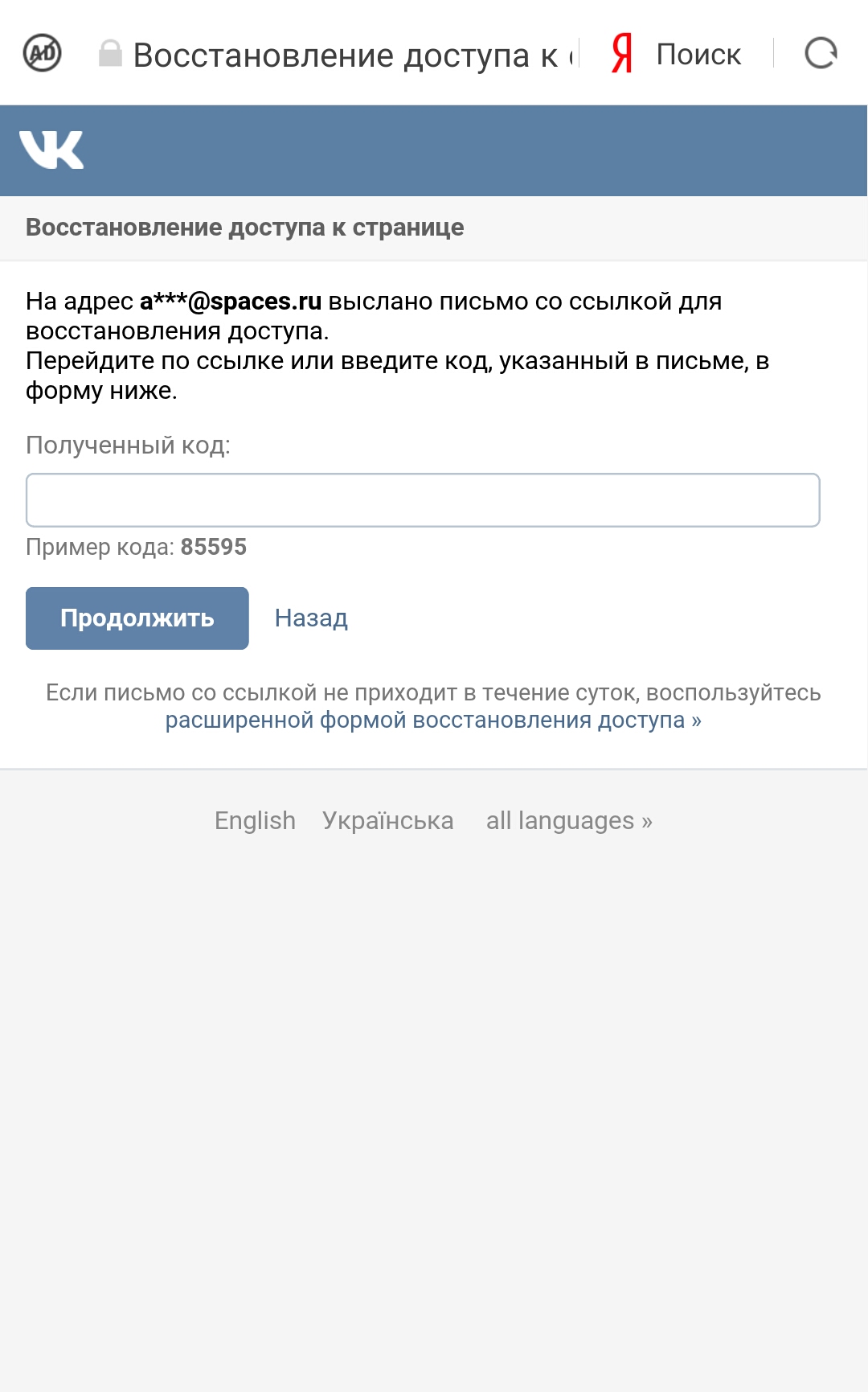 мыло требует вк пароль не помню