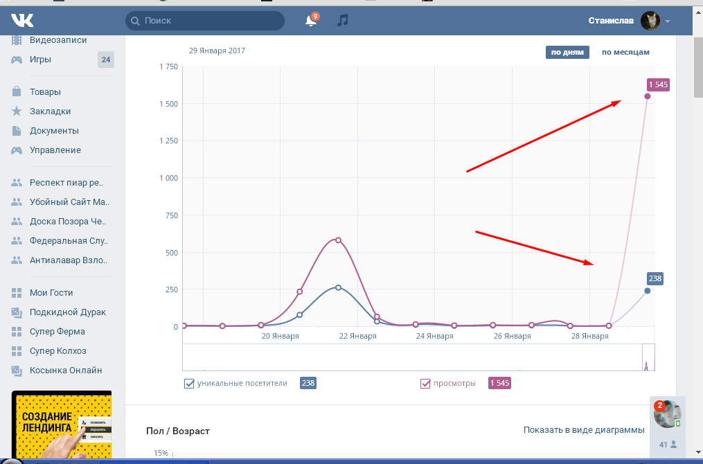 ResidenT Evil [PRO] , https://vk.com/stats?gid=138779789 за 2 минуты 7 к набрал и это все уникальные поситители