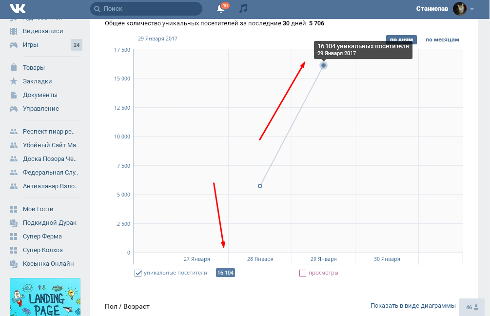 ResidenT Evil [PRO] , https://vk.com/stats?gid=138779789 за 2 минуты 7 к набрал и это все уникальные поситители