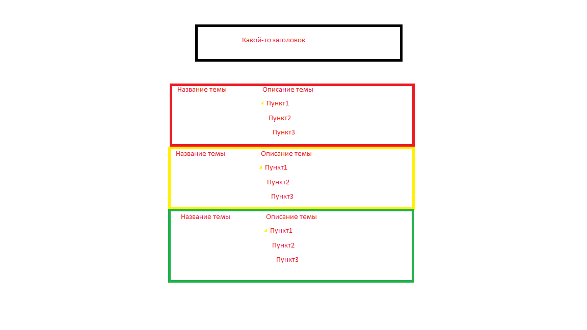<div style="border: 3px solid yellow; text-align:center; color: red;">Название темы <span style="float:center;">Описание темы<br /><cetner>Пункт 1<br />Пункт 2<br />Пункт 3</div>