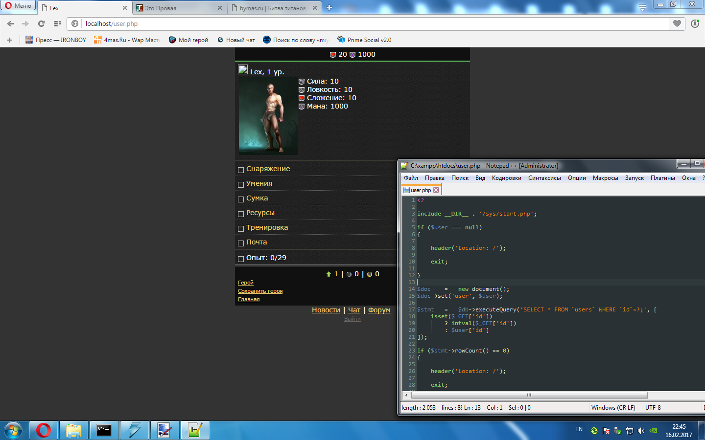 Убраны все ненужные параметры игрока. Остались только основные, их всего 3, Сила - отвечает за урон, Ловкость - за уклонение в бою и шанс нанесения крит. удара и Сложение - влияет на жизненные силы (хп) игрока.. Так же есть и второстепенные параметры, такие как Защита и мана, которые формально статичны. Уровень маны можно будет увеличить только лишь надев божественные вещи либо купив Благословение. Защита будет повышаться только от вещей, з.ы от оружия не добавляется защита. Так же Переписана система регенерации маны и хп, теперь всё стабильно. Система уровней работает стабильно.