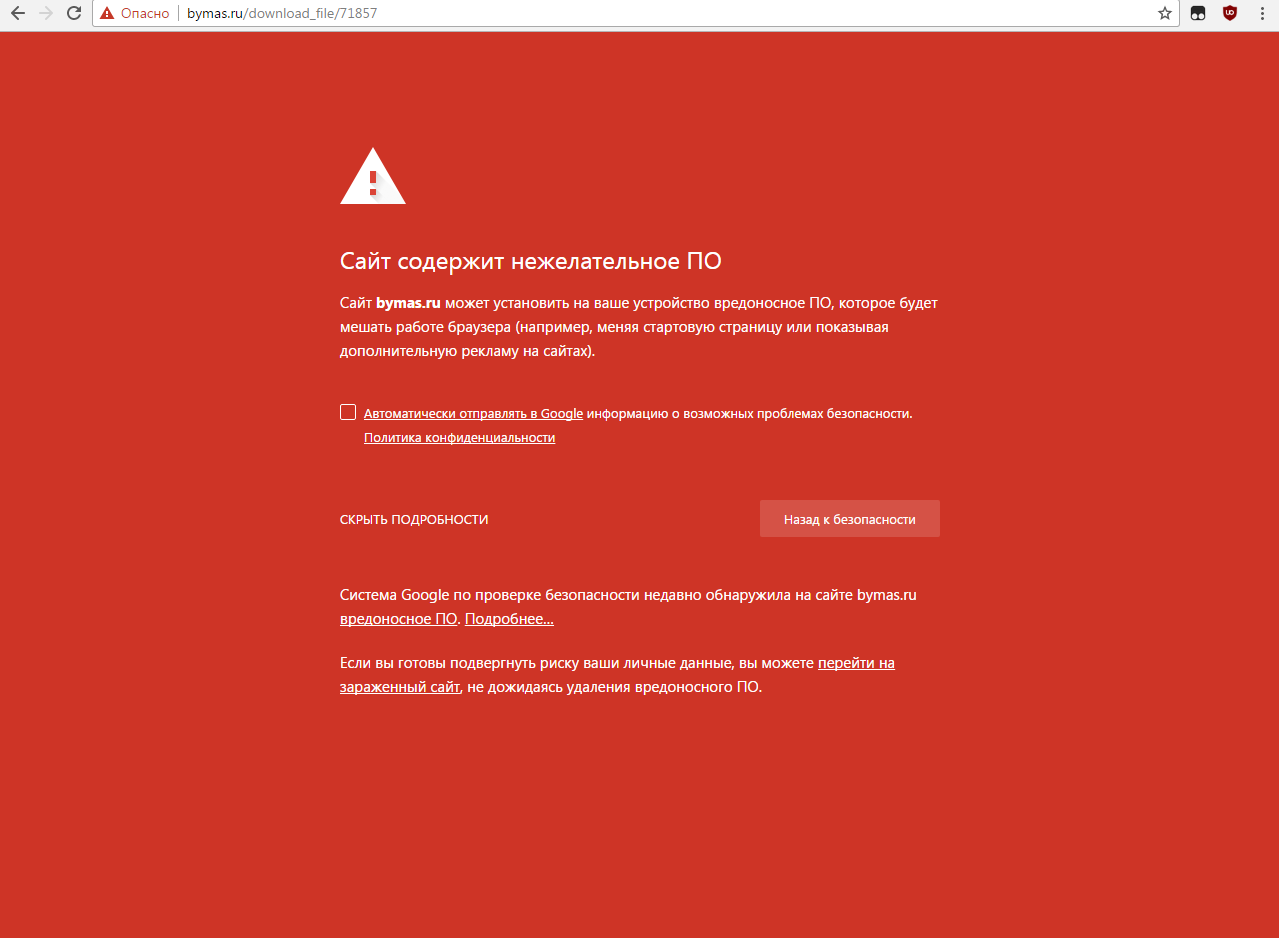А то что у тебя, это скорей всего файл с вирусом или шеллом, вот этот адрес яндекс и пометил как вредоносное ПО