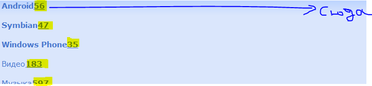 <div class="link1"><a href="#"><b>Android</b> <span class="rait">56</span> </a></div>