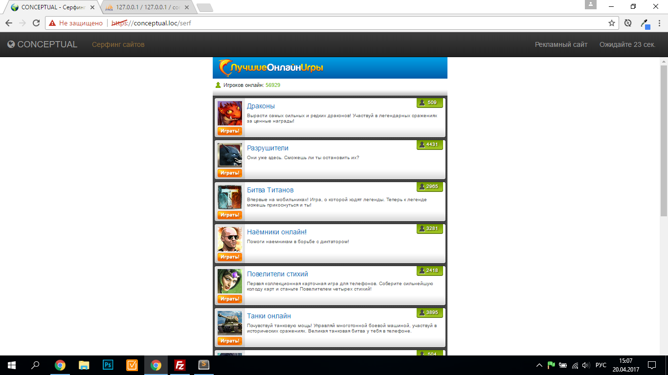 сайт просматривается во фрейме, идёт отсчёт времени до окончания просмотра