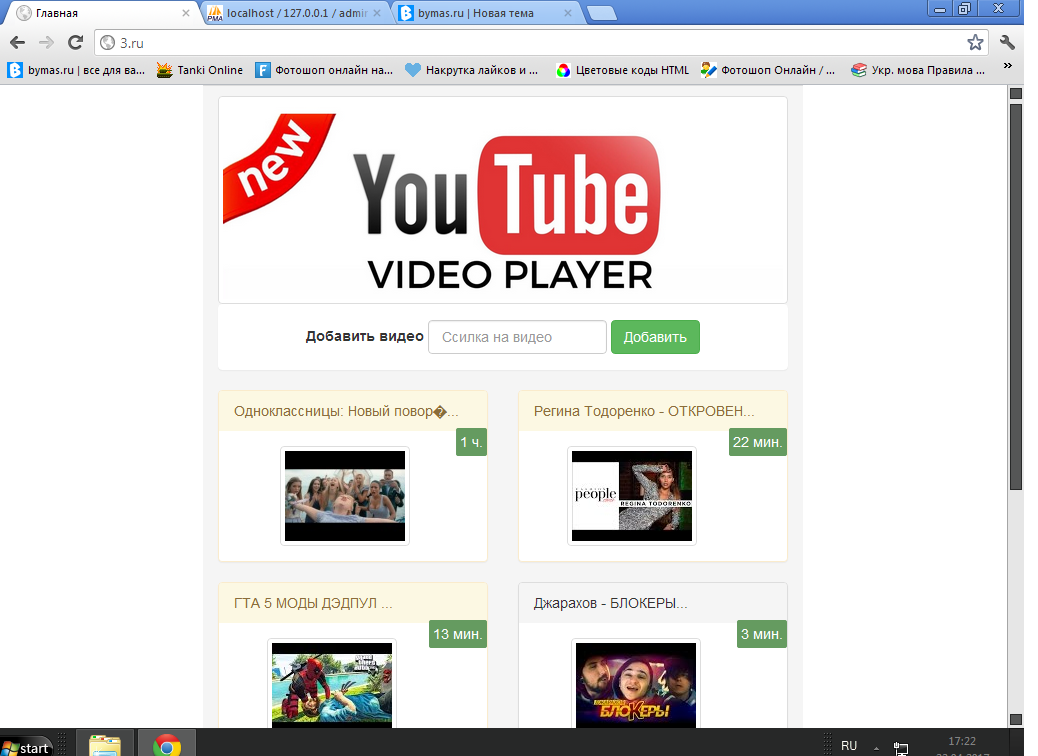 (по желанию могу добавить скачку видео,кол просмотров,рейтинг,теги,возможность коментирувать)