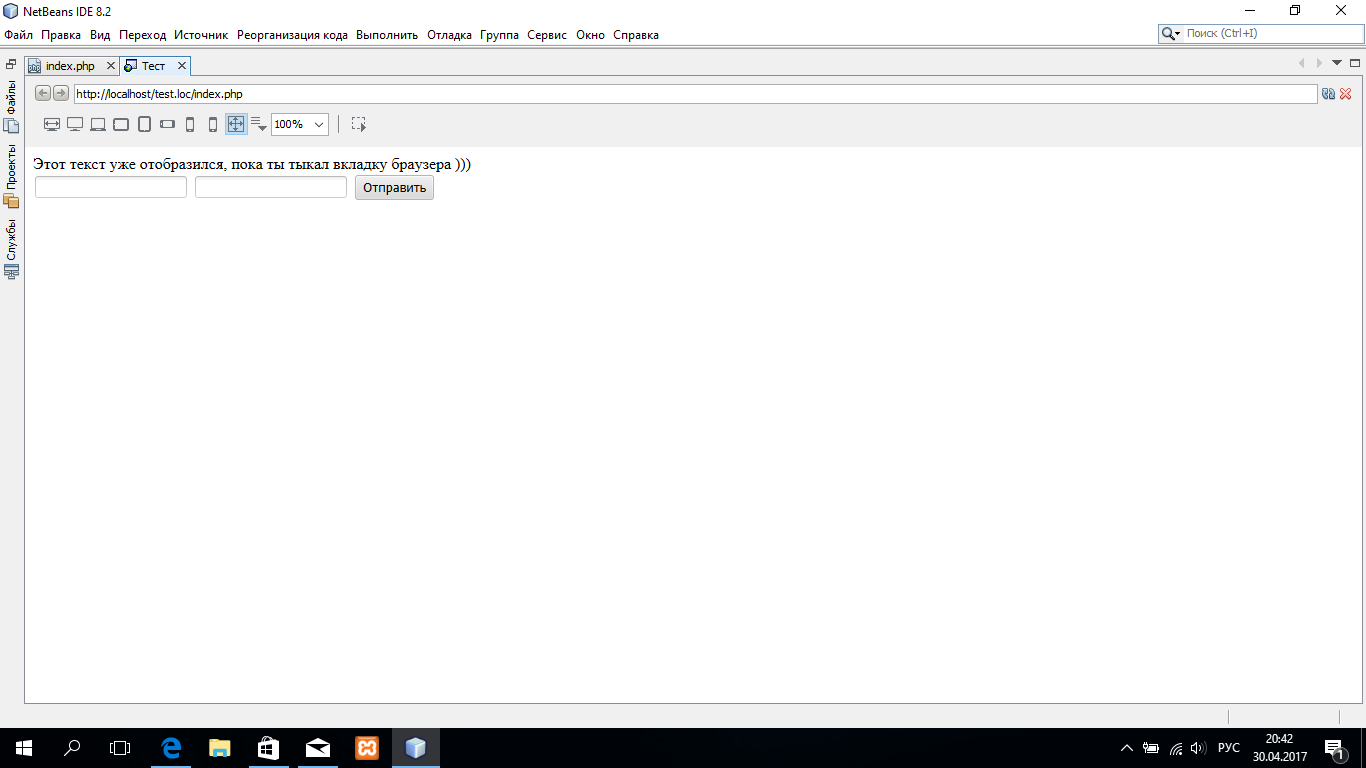 чтобы смотреть изменения, поэтому возник вопрос - можно ли при подключенном внешнем монике открыть на нём вкладку со встроенным браузером IDE, а на ноуте тупо редачить скрипт и тут же на внешнем монике видеть результат? .45.