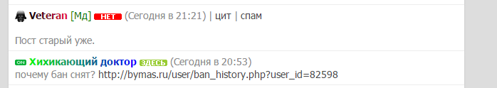 5. Снимать с должности я не прошу, но попрошу, чтоб забанили данного юзера http://bym.guru/user/ban_history.php?user_id=82598 , либо если это так , как сказал ветеран, на скрине который ниже, то жду извинений публично , перед всеми, за то что я сидел в бане за старый пост. тему оставлю открытой, пишите своё мнение.