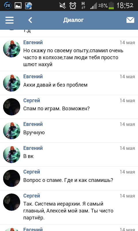 И что именно ты хочешь на тех скринах увидеть?В теме всё по факту написано,пиарил как мог,ты же мне написал типа моя обязаность пиарить каждый день, там хз во скок часов,нет ты не указал,количество пиара не было указано,ну и про группы в вк мы договорились,что тип спамлю ток там,дал бы акк с игры проспамил бы в игре и да за какую клевету ты меня хочешь повесить?По факту я просто вынес тему, что мол человек откался от услуг,где я тебе что то левое приписываю?Клевета это когда человек 100% не виновен,а в этой ситуации я бы поспорил