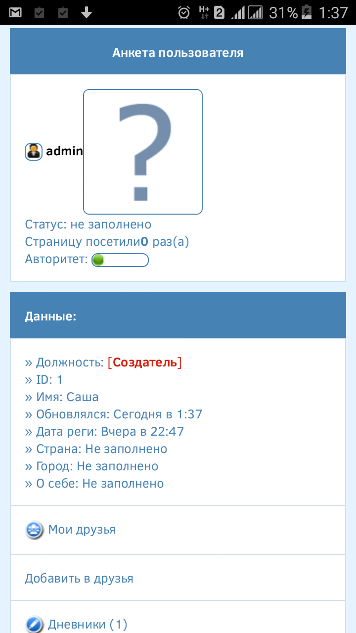 , бо ему 2 дня паоу модов только написал типа блог анкету и вход регу