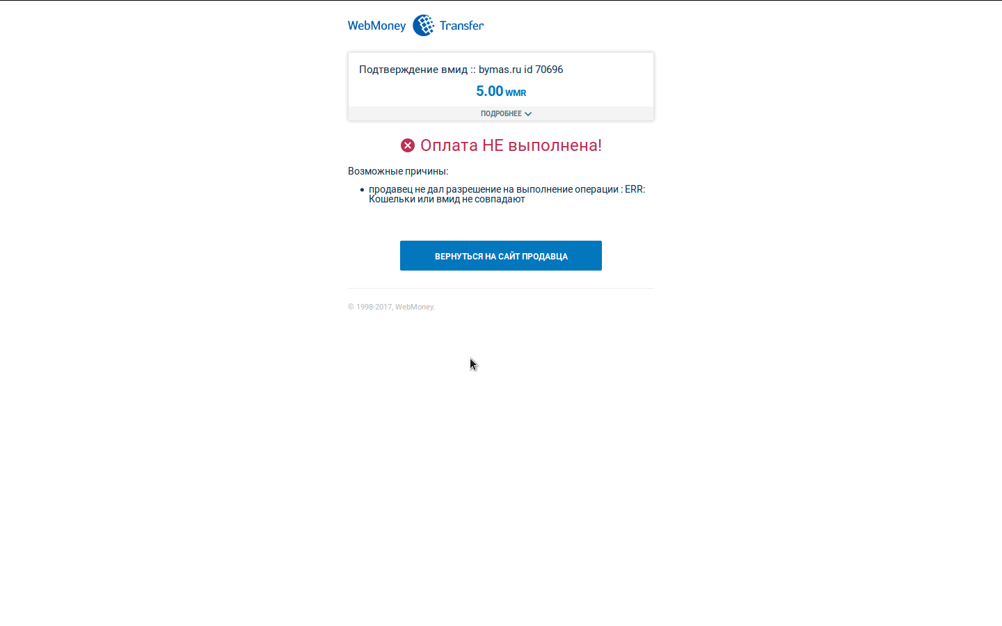 Не могу подтвердить wmid