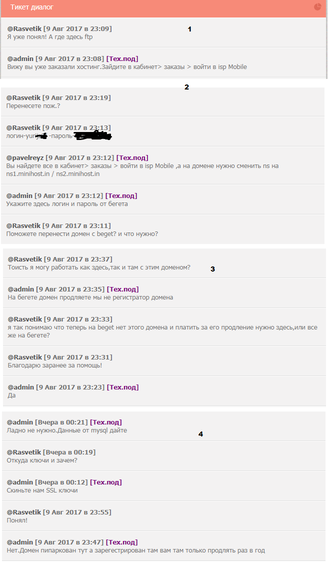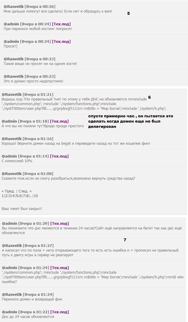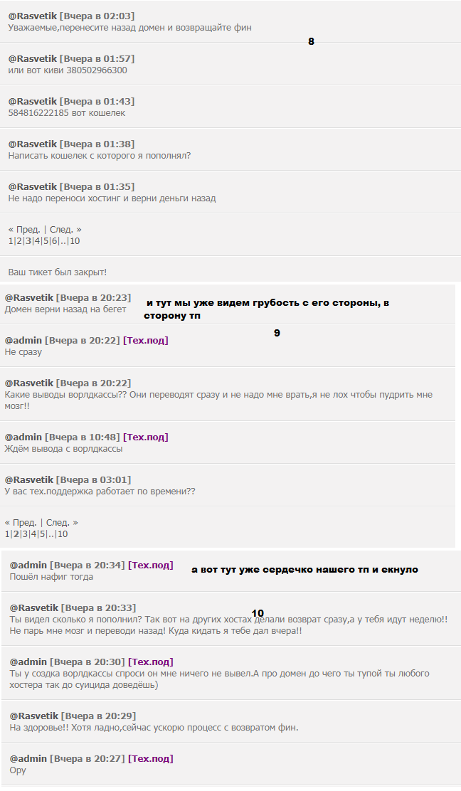 Rasvetik , 3 скрин , там уже идет со стороны клиента уже негативное высказывание в сторону хостинга , его аккаунт не был заблокирован или удален ! Но при том что первый начел ты.... Я скинул все страницы вашего тикета , могу еще один тикет скинуть , где лексиком с вашей стороны желает лучшего