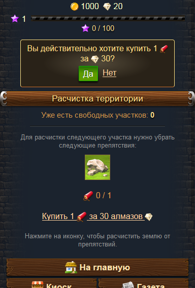 Добавлено подтверждение очистки территории, покупки инструментов для очистки.