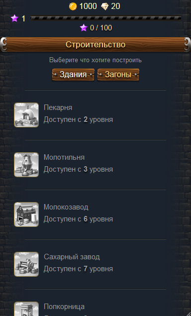 Реализовано постройка зданий (если имеется территория для для постройки).