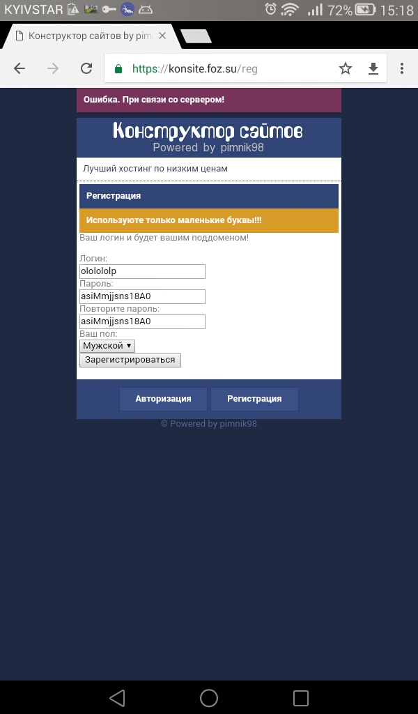 И да, букавы можно привести в нижний регистр, а не заставлять нас печатать их и да, регистрация туфта, то зависает, то ошибку тыкает, крч забрось проект, шлак