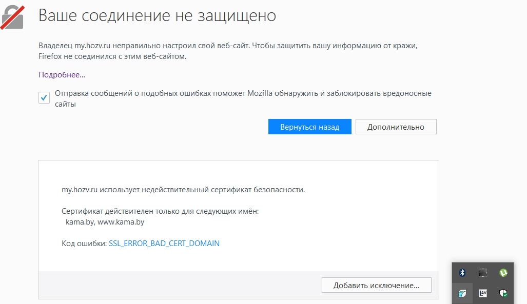 Ваше соединение не защищено,Владелец неправильно настроил свой веб-сайт. Чтобы защитить вашу информацию от кражи, Firefox не соединился с этим веб-сайтом.