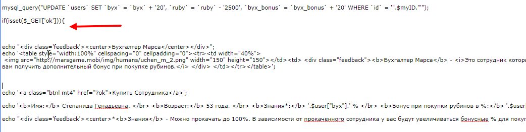 echo '<a class="btnl mt4" href="?ok">Купить Сотрудника</a>';