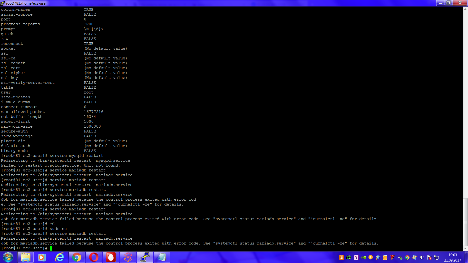Sep 21 19:00:54 81.23.11.205 mysqld_safe[30452]: 170921 19:00:54 mysqld_safe Logging to '/var/log/mariadb/mariadb.log'.