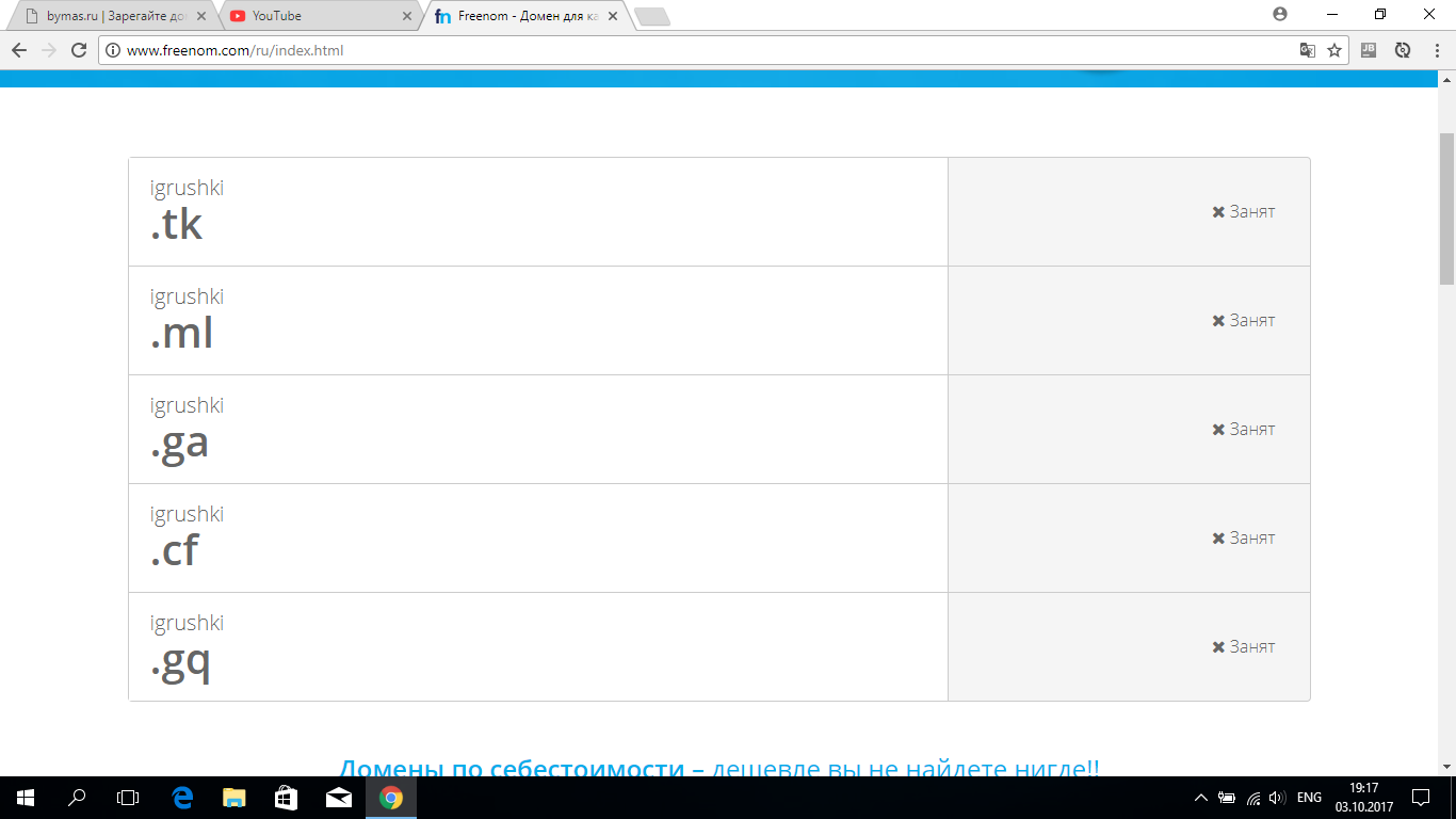 Все бесплатные домены с этим именем заняты