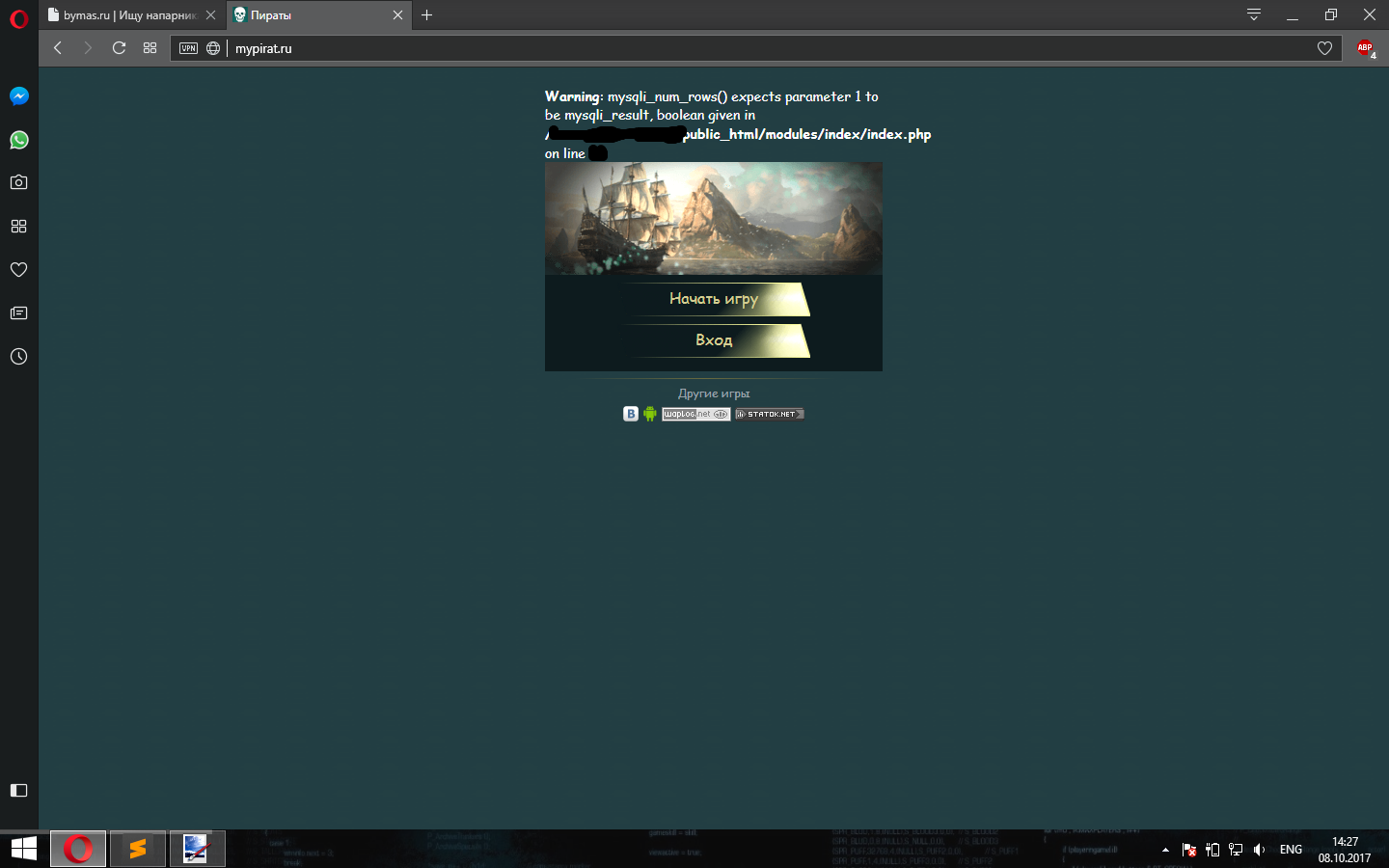 , вот уже как бы помог. Исправляй ошибки. Или хотябы пока отключи их отображение.