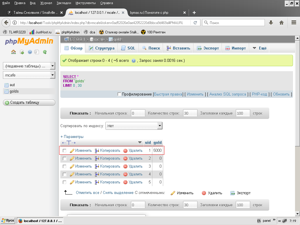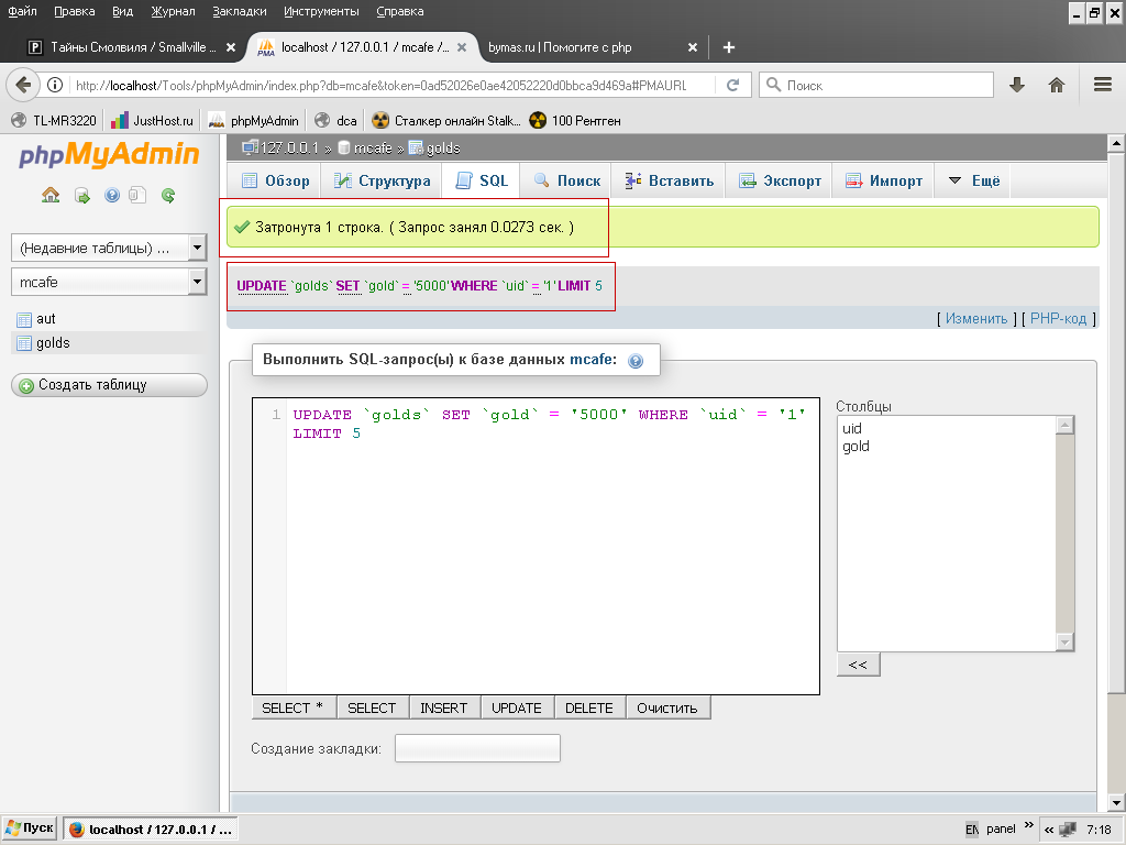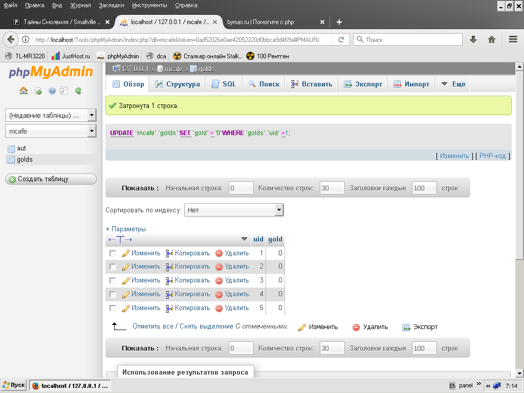 обратите внимание, что затронута 1 строка, а LIMIT выставлен на 5