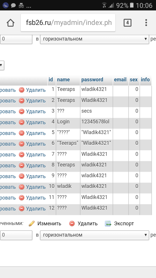 Здравствуйте, пишу игру , и блин без проблем никак , вообчем , русские буквы в бд входять как ???? а англ норм , в чем проблема