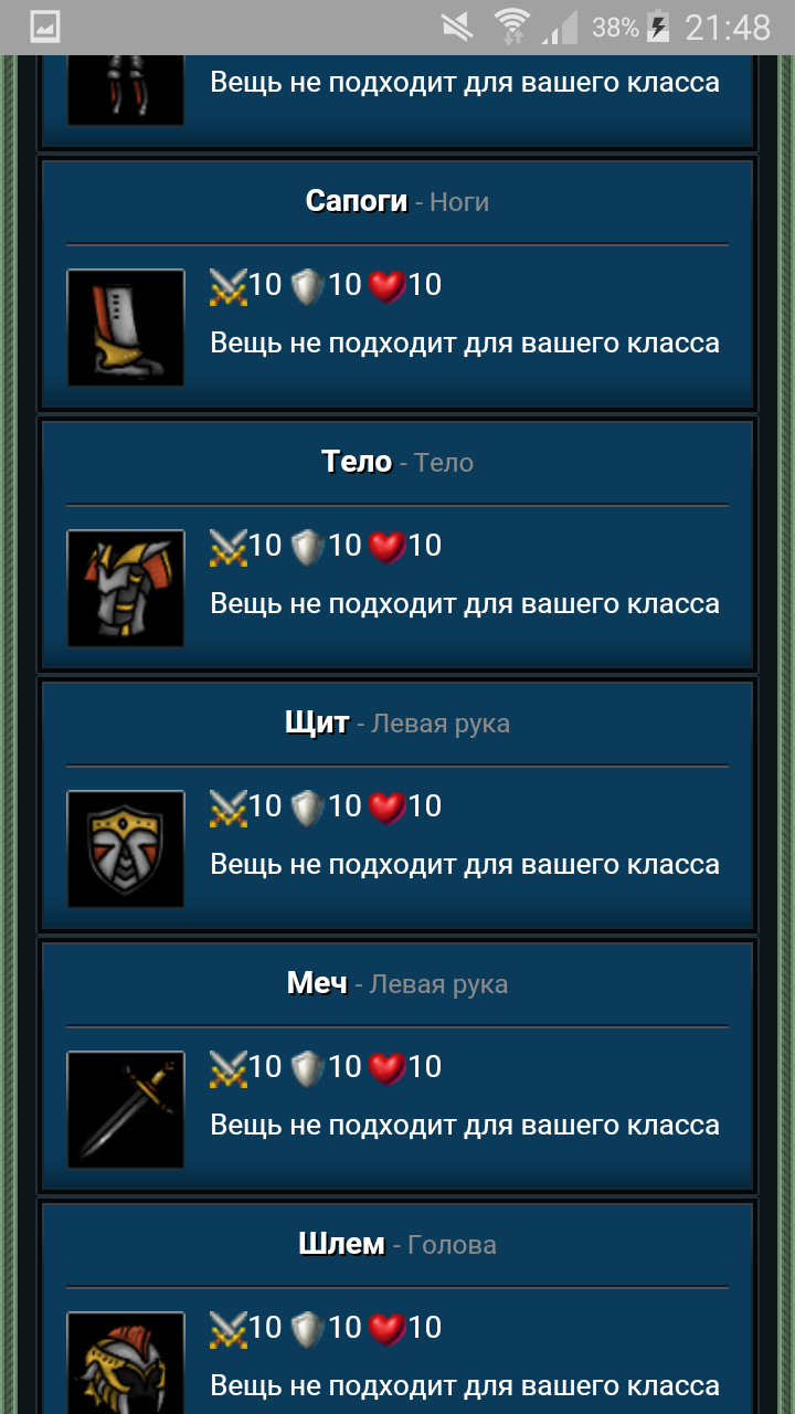 Оцените персонажа...доступны 2 класса, у каждого свои вещи, манекен ресуется, при смене класса, вещи автоматом в рюкзак ложатся, все само рисовалось