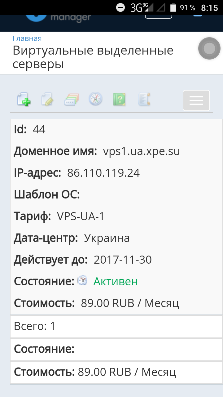 Характеристики: 1 core/512 MB RAM/10 GB SSD.