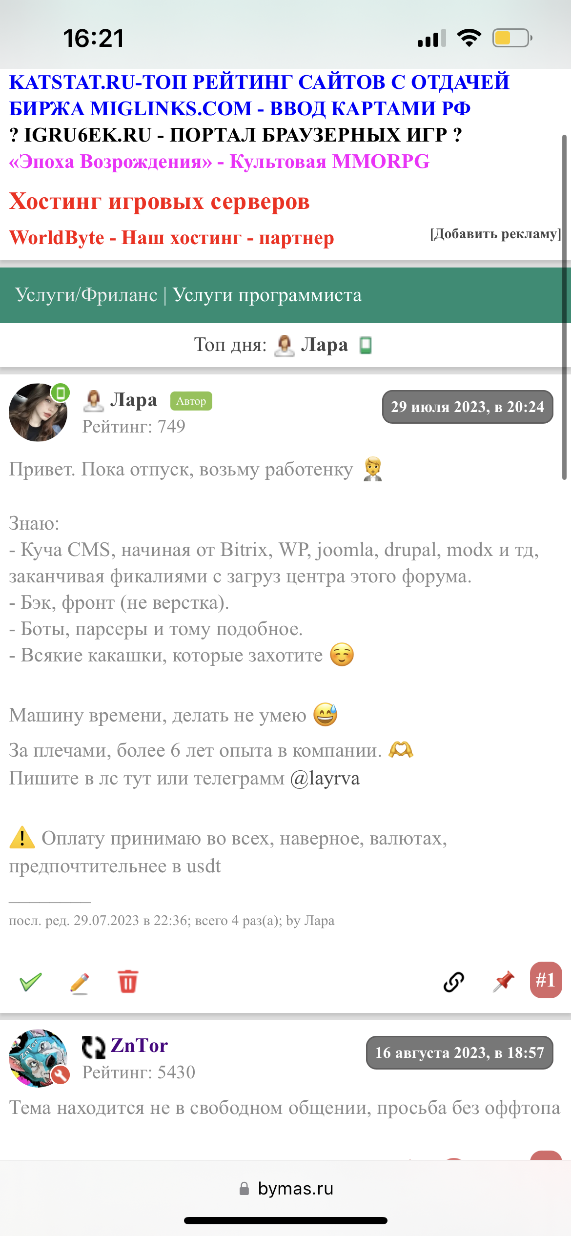Я сейчас в отпуске и в не рабочее время, не работаю официально