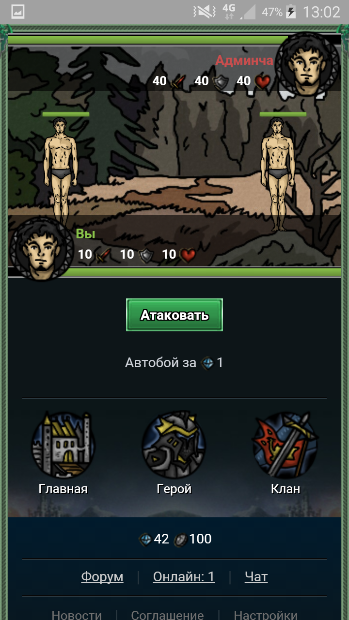 Итак, уже профиль персонажа, настройки, поддержка и тд, чат, форум, щас пишется клан, уже есть арена и поля боя с javascript, оцените...манекен уже есть, но поставят вечером