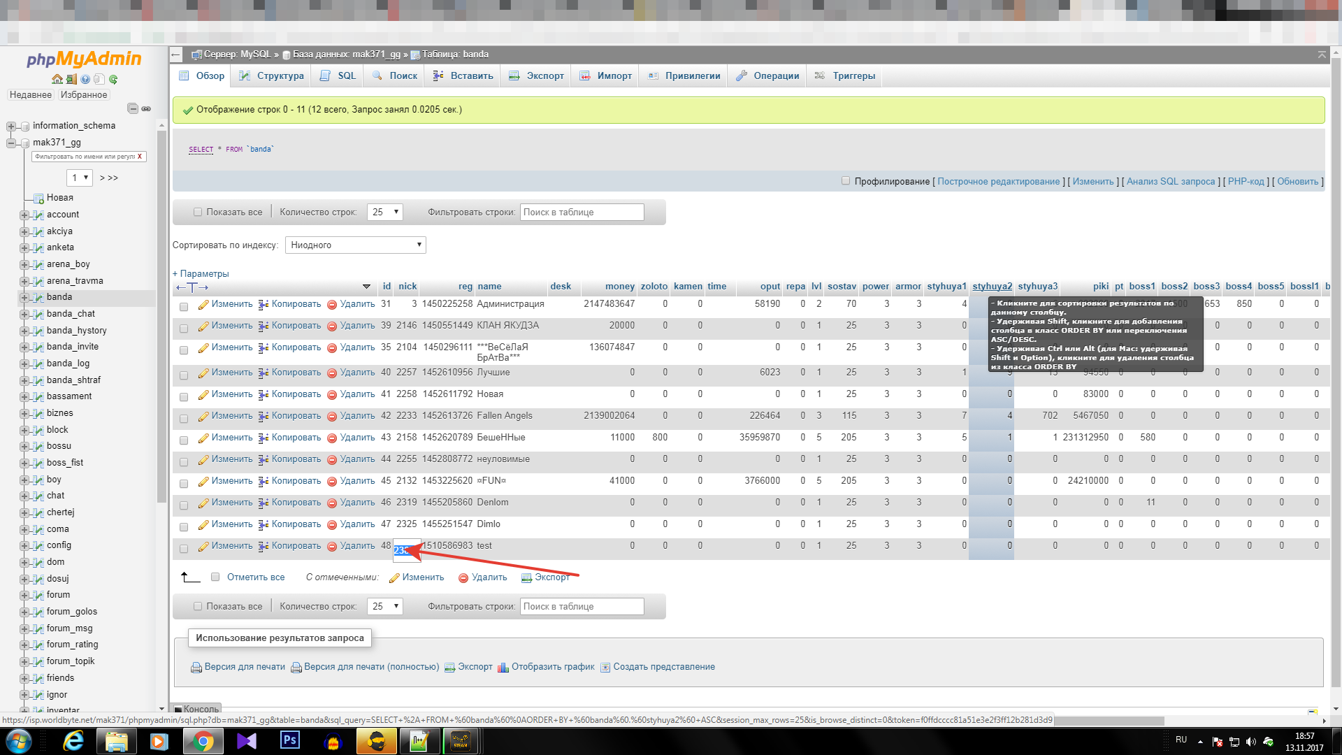 в самой таблице nick есть данные банды мы сравниваем но оно не выводиться