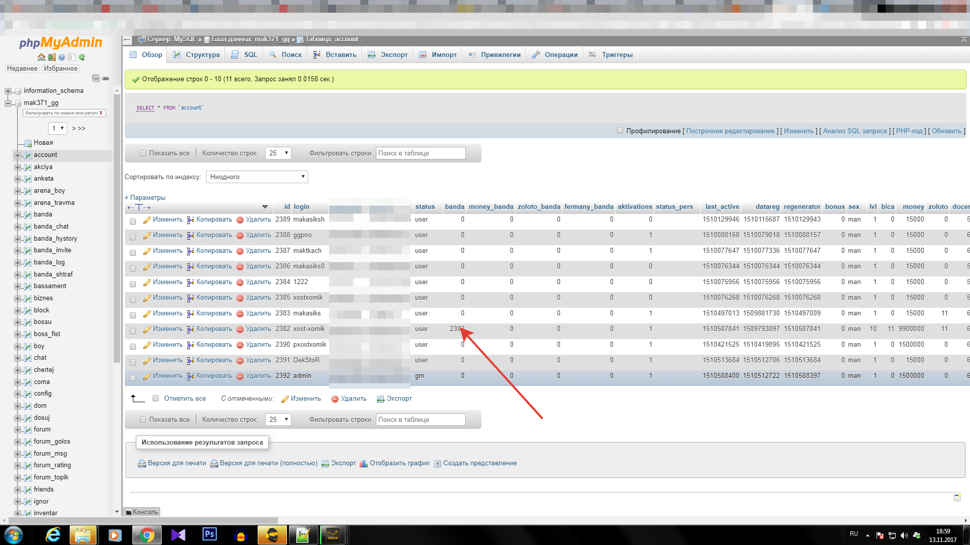 RUS , нашёл проблему там надо не ид а банда $acc[banda]