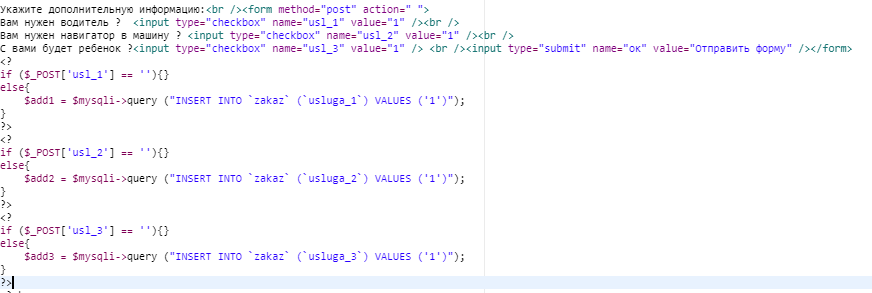 Вам нужен водитель ? <input type="checkbox" name="usl_1" value="1" /><br />