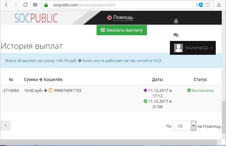 за 3 минуты заработал 10руб и вывел успешно!