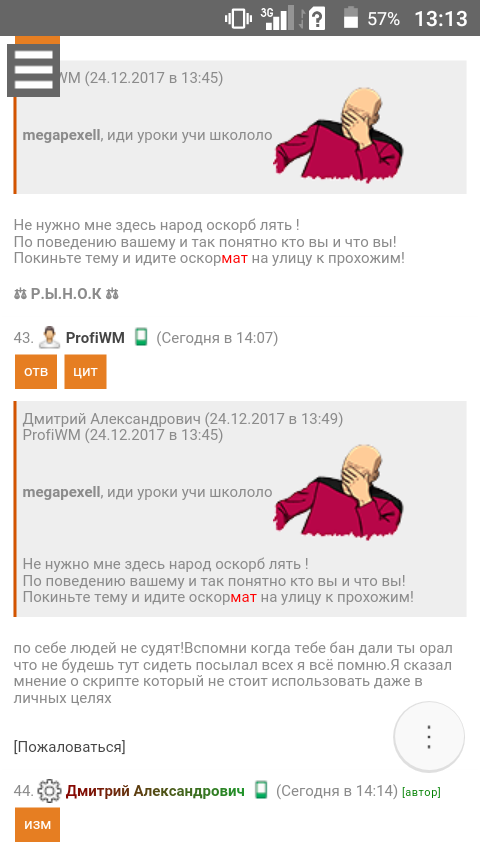 плюс оскорблял пользователя в моей теме;