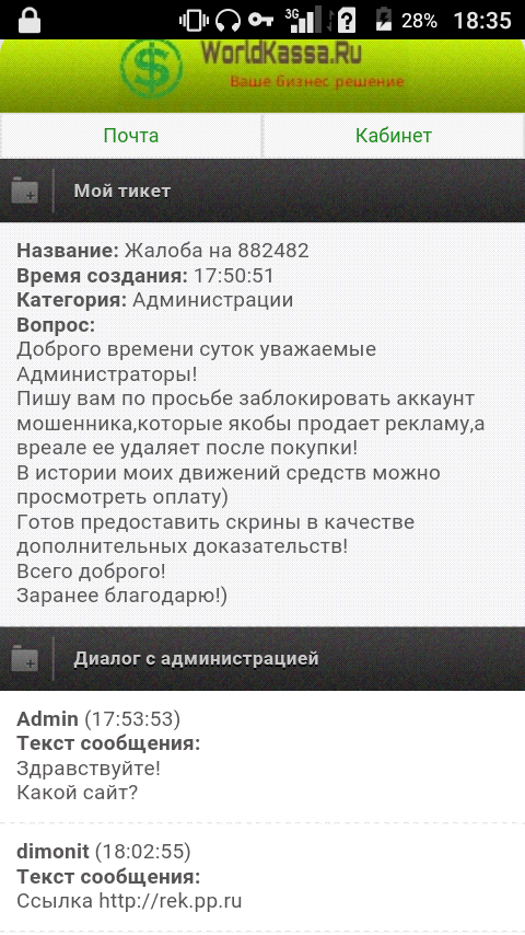 Продал мне рекламу ,я заплатил за два дня (скрины с ворлд кассы ниже)