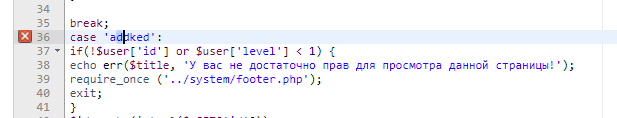 if($adked['id'] == 0 or $user['id'] == $id or $id == 1 or $adked['level'] >= $user['level']) {