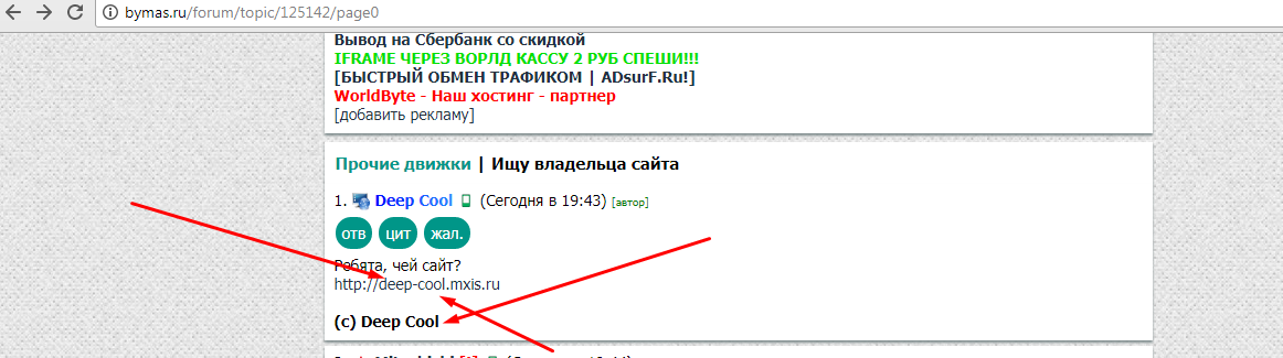ты че?? ты в теме http://bym.guru/forum/topic/125103/page0 пишешь что Начал работать над своим движком)) и адрес сайта указал deep-cool.mxis.ru а тут спрашиваешь чей это сайт? что за бред?? ты что совсем с ума сошел или таким способом решил разместить ссылку на бумасе?