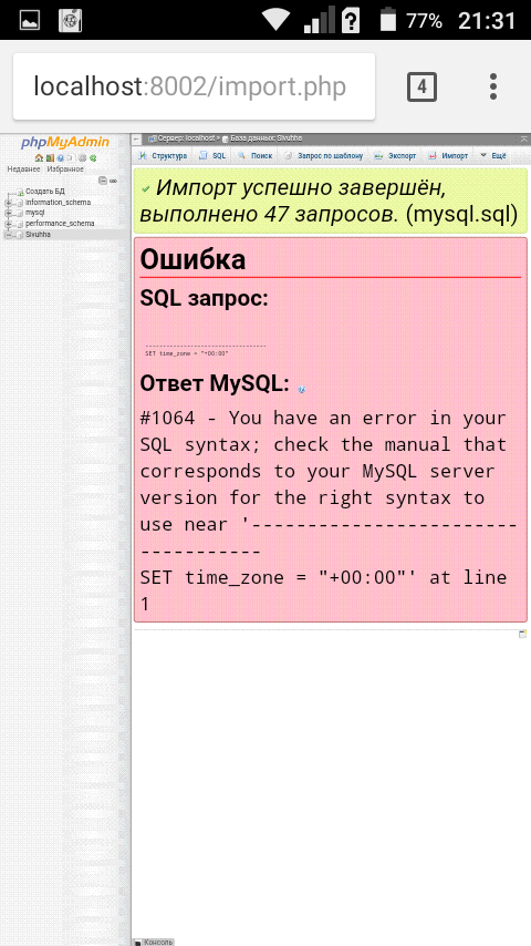 Вообщем импортирую базу, выскакивает вот такая ошибка.