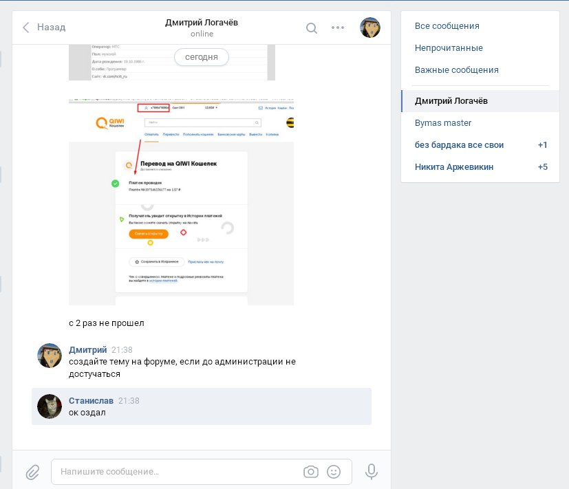 Личка закрыта у Администрации, модуль автоподтверждения киви не работает.
