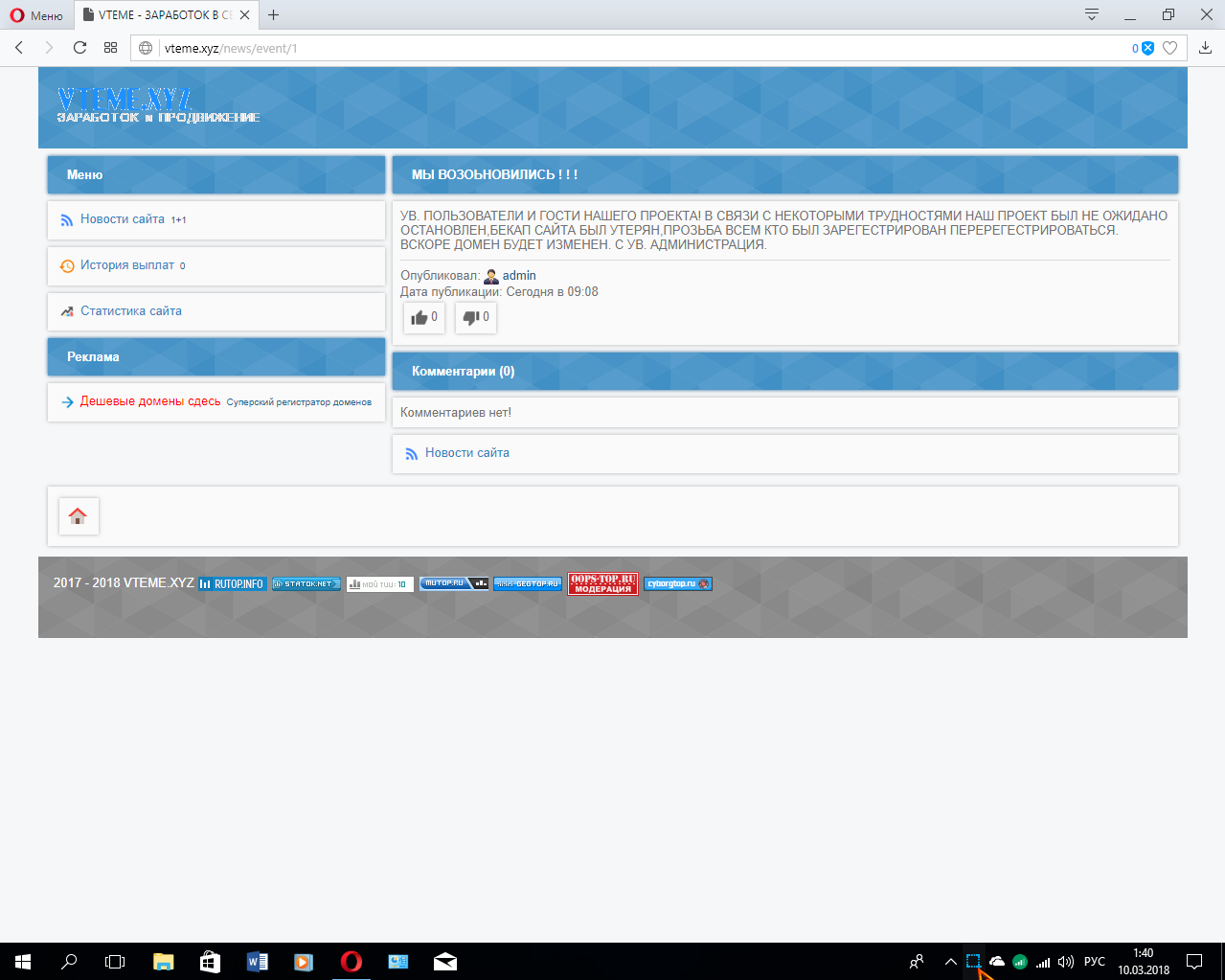 Теперь введен ежедневный бонус для всех пользователей от 0.01 до 0.15р. Реферальный % теперь состовляет 30 %