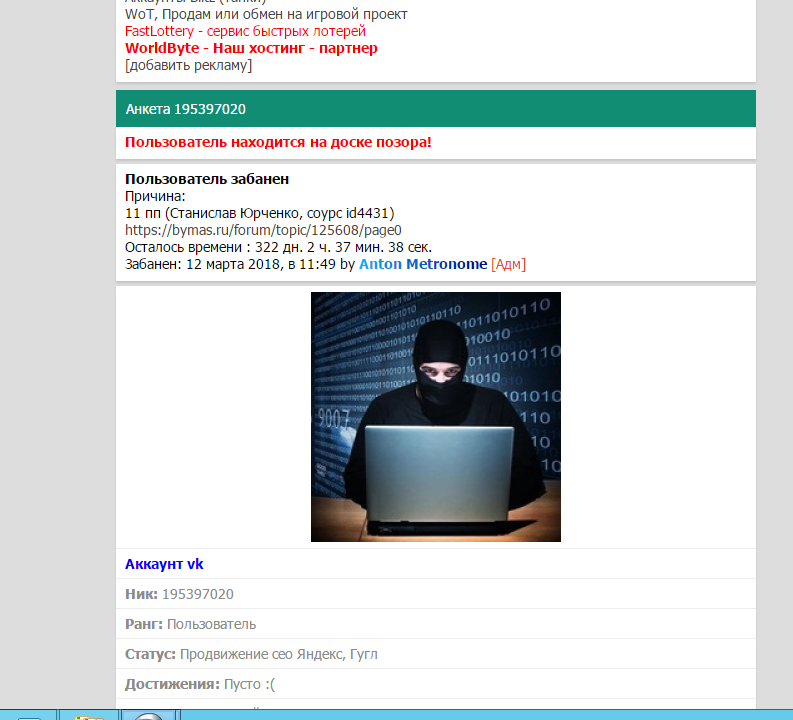 Данный аккаунт является 2 аккаунтом от 1 поста, но не запрещающий правилами иметь аккаунт ВК, от личной не приязни Админа, требую снять с доски и снять Бан, так как не 1 доказательства мошенничество не было, и разобраться со своими админами, так как имея кнопки под рукой не имеют право просто так клеветать и вешать!!!
