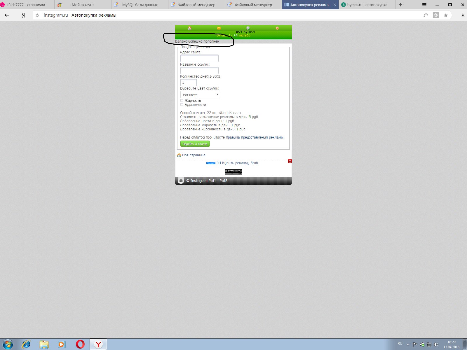 проблема у меня в том что я покупаю рекламу и все успешно выполняется, после этого ссылка на главную не показывает а в базе она уже добавлена.. в чем может быть проблема? это dcms-social автопокупка обычная wk