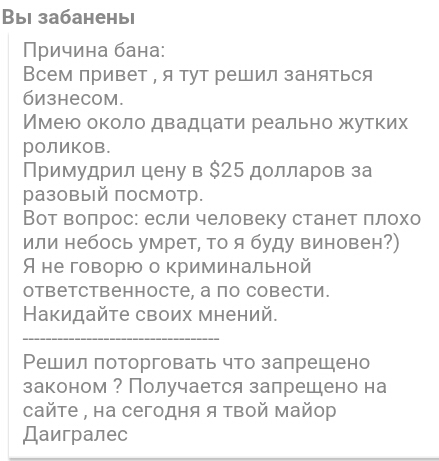 ты предлагаешь продавать видео где есть насилие, жестокость , не ты ли принимал в этом участие , а так же призыв к экстремизму , ты даешь это видео пользователям с насильственным характером за 25$ ,а если этот пользователь захочет заняться тем же чем и в видео ,а так же на счет украины