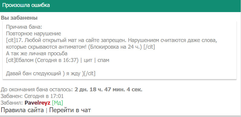 Жалобы на администрацию | Жалоба (Pavelreyz) от 30.04.18 22:18