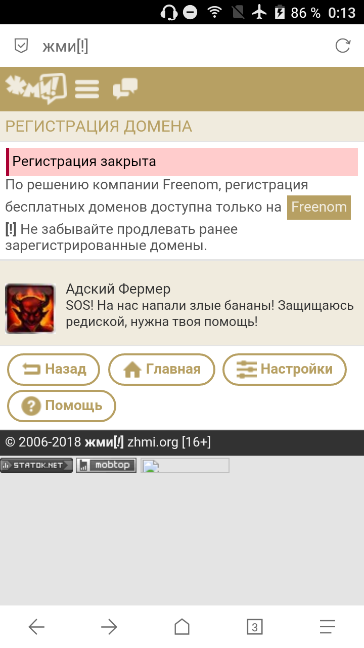 Вот если есть такие люди хто не может зарегистрировать домен вот вам простой сайт для регистрации zhmi.org раздел все для wap мастера