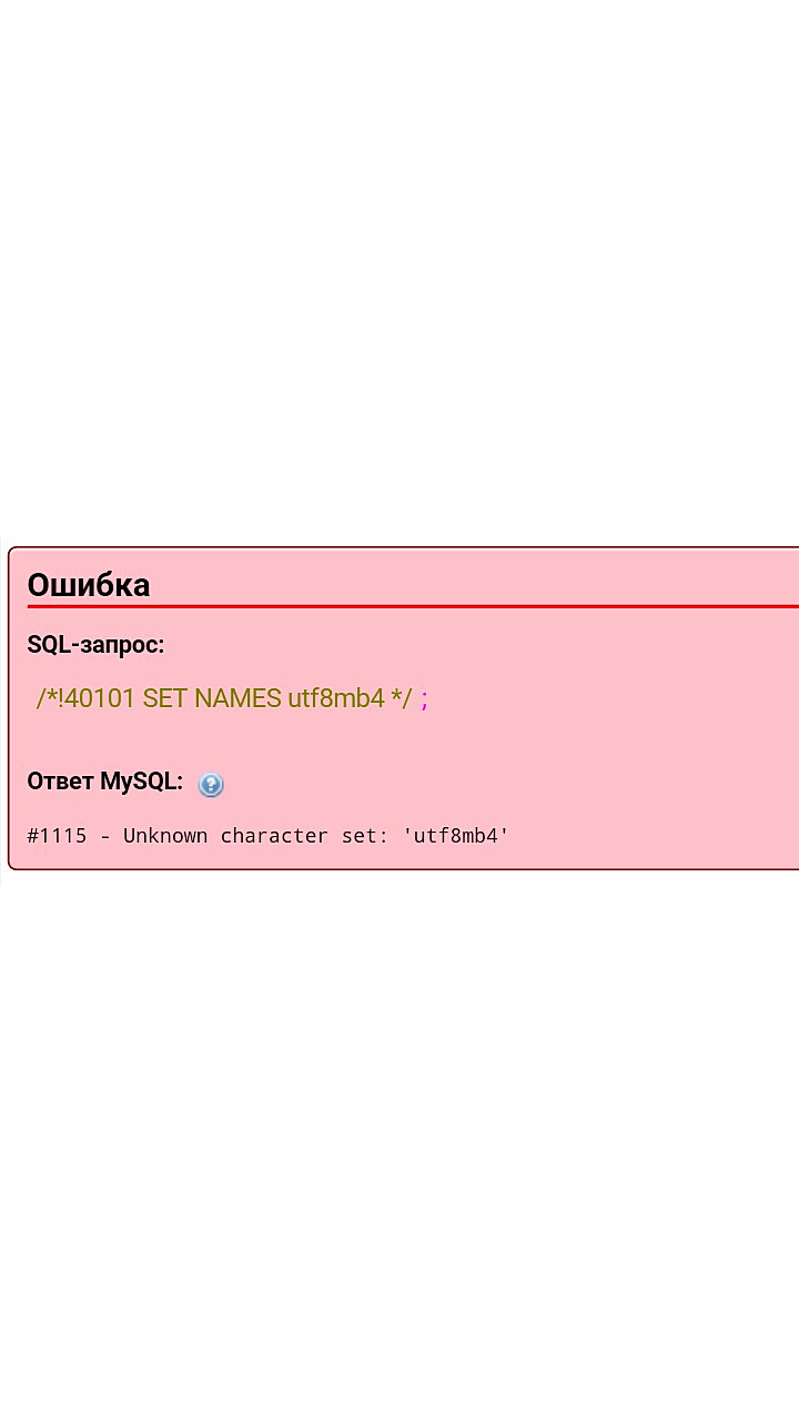 , замени все utf8mb4 на utf8