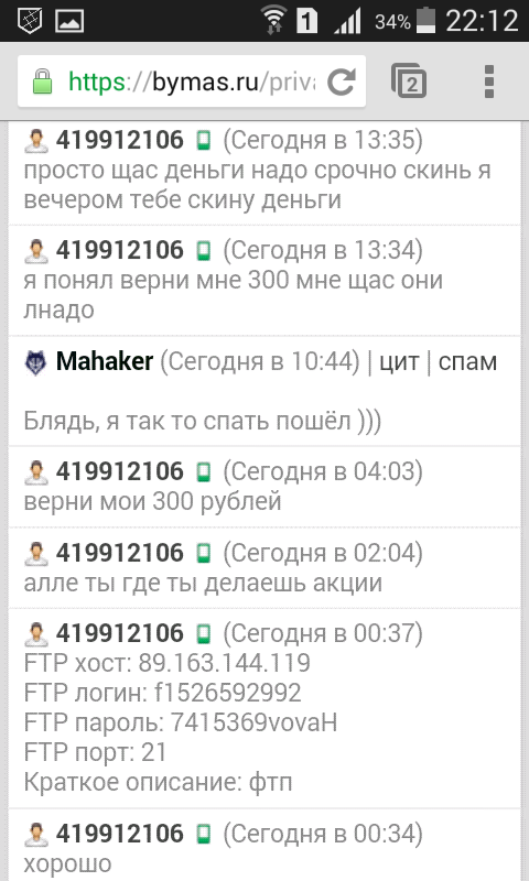 Смотрите данные пользователь обманул меня на 300 рублей и не хочет возращаться кто согласен что бы поместить его на доску
