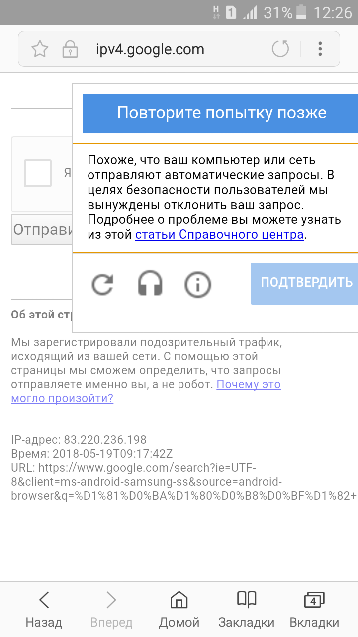 Не дает ввести капчу и пишет "подозрительный трафик вашей сети"