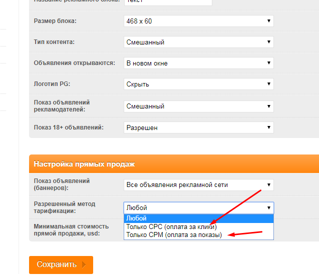при настройке площадки есть выбор какую рекламу показывать и за что платить деньги! мин вывод 1$ раньше ставил на кино сайт то за 2 дня насобирал несчастный бакс вывел его и больше не ставил,так как нашел более дорогую рекламу! недавно побывал на порно сайт ставить и крутить тоже долго нудно заработал бакс и вывел-мало платят,но платят!