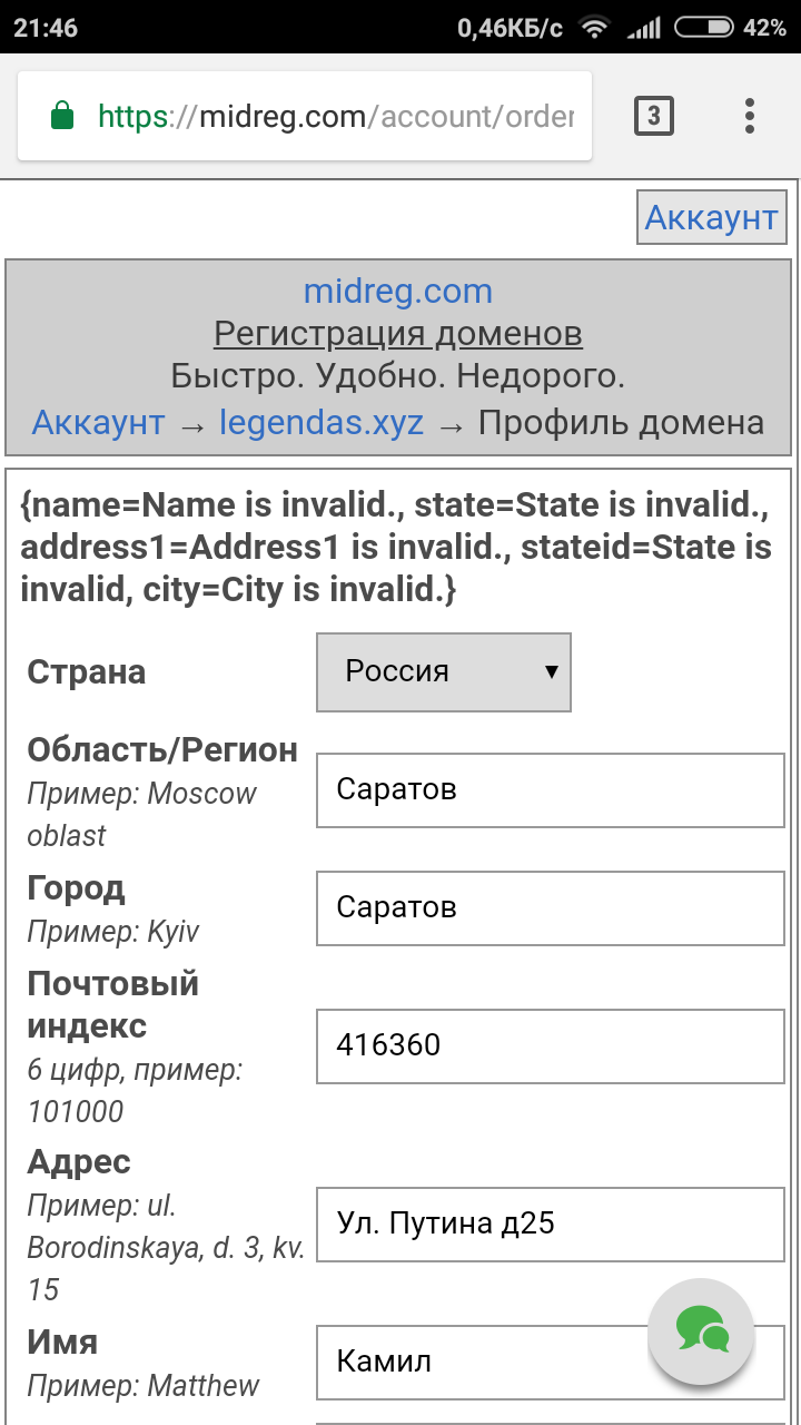 Короче пытаюсь регнуть домен. Но при заполнении поля номера такую ошибку показывает